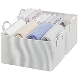 - Medium sized fabric bins for holding easy-to-fold, loose items on a shelf or inside the closet